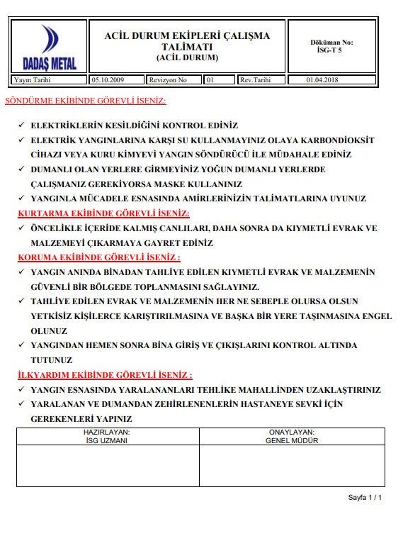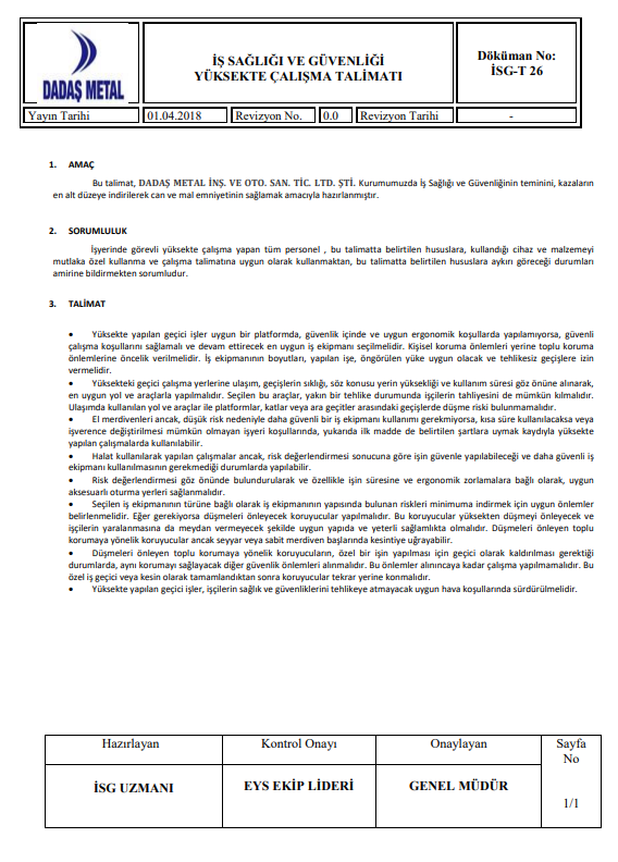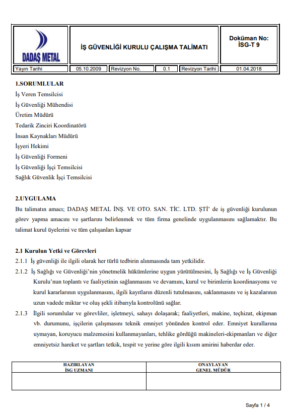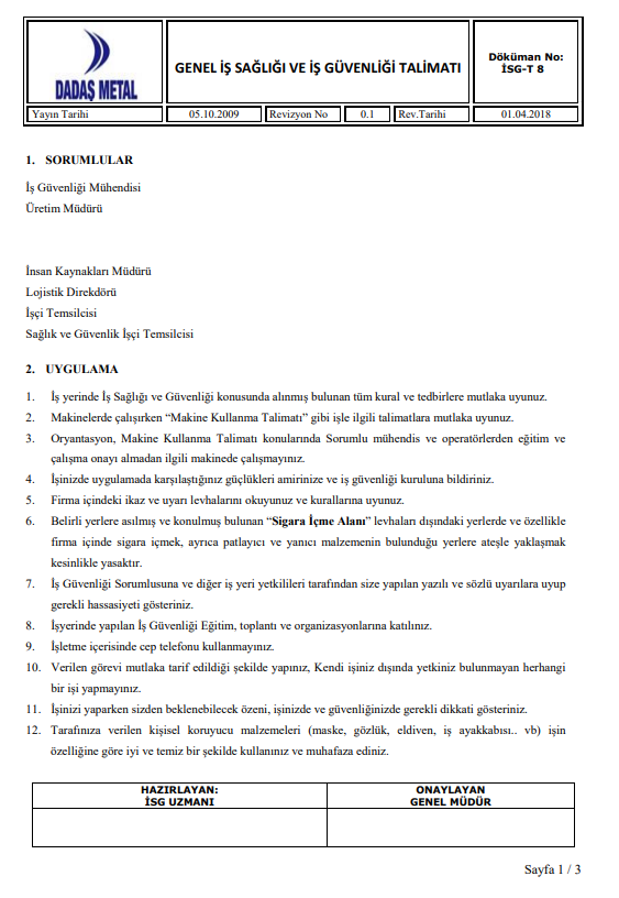İŞ SAĞLIĞI VE GÜVENLİĞİ